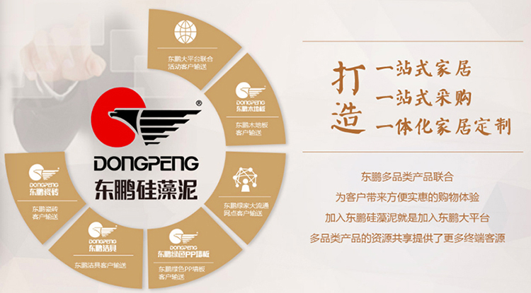 東鵬瓷磚,東鵬潔具,東鵬涂料、瓷磚等大流通產(chǎn)品、木地板多品類產(chǎn)品聯(lián)合,加入東鵬大平臺,資源共享,渠道共榮。
